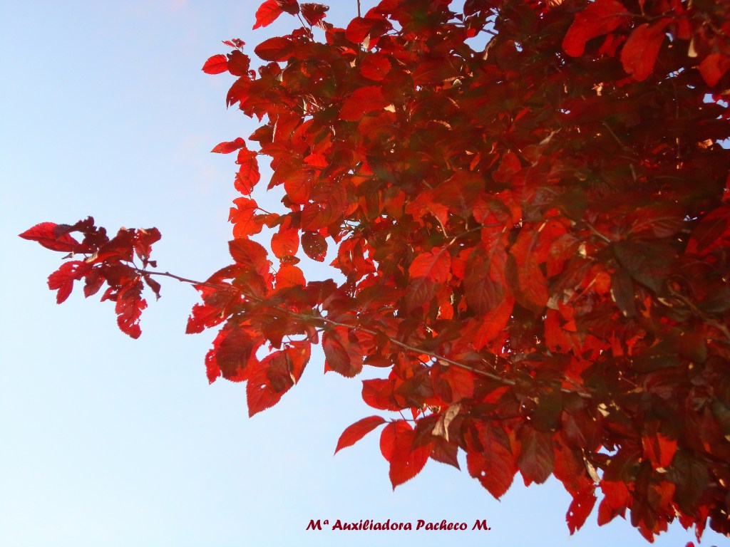 ¿Te encantan los juegos de transparencias tan hermosos que consiguen los fotógrafos profesionales en el follaje y te gustaría hacerlos? Yo no soy fotógrafa profesional, y he podido hacer algunos bastante hermosos, con una cámara no profesional. No es tan difícil, el truco es elegir bien el árbol o planta a fotografiar, la hora a la que reciban la mejor luz, y la toma más adecuada. Como es lógico, si se va a fotografiar una planta de poco porte y no hay ningunas alrededor que tapen la luz del Sol, lo mejor es hacer la foto cuando los rayos de luz están más horizontales, las primeras horas de la mañana o las últimas de la tarde. Si se quiere hacer a otra hora, habrá que buscar la posición en las hojas se transparenten sin que moleste una luz excesiva. Para practicar hasta dominar bien esta técnica, sin embargo, yo recomiendo empezar por los árboles. Alza tu rostro y mira como cambian las hojas bajo la luz. Los pintores siempre han sabido que la luz lo cambia todo, el color, el ambiente, etcétera. Ahora nos toca plasmar estos efectos a los aficionados a la fotografía. Me confieso una enamorada de los ciruelos purpúreos para este tipo de fotos. Míralos primero desde enfrente en un momento en el que no reciban luz del sol directa si es posible. Verás un árbol de color granate oscuro, que hasta puede que te preguntes por qué han puesto ahí un árbol tan poco atractivo. Tienen su momento de esplendor, pero eso será tema para una nueva entrada. Ve luego cuando estén recibiendo los rayos del sol y mira hacia arriba. Puede que te quedes con la boca abierta. Verás un follaje rojo intenso en diferentes tonalidades según la cantidad de luz que reciba, formando algo muy parecido a una vidriera. Es el mismo ciruelo, la magia está en la luz. Con las hojas de la mayoría de los árboles ocurre lo mismo. Los rayos del Sol forman transparencias, inigualables durante el otoño, formando vidrieras otoñales. Te animo a que empieces a fotografiar las transparencias del follaje, con pocas tomas conseguirás fotos geniales. Si crees que necesitan algún retoque, puedes leer las entradas anteriores.