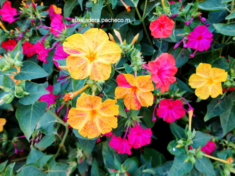 Dicen que de vez en cuando sopla un extraño viento que cuando toca las flores se vuelven del todo locas. Había unas lindas matas con graciosas trompetillas de un color uniforme exhalando su perfume desde que alargan las sombras hasta cuando alumbran los días. Un soplo las emborrachó llenándolas de vesania y cada flor se tiñó de un diferente color, algunas hasta mitad y mitad de diferente tintar. Al verles tanta locura exclamaron otras plantas: ¿Qué estáis haciendo? ¿Habéis perdido el juicio? Pero estaban tan borrachas que no les hicieron caso y continúan hasta ahora sus curiosas floraciones. Todavía soplan mágicos aires que al envolver los pimpollos los enloquecen del todo y confunden sus colores.